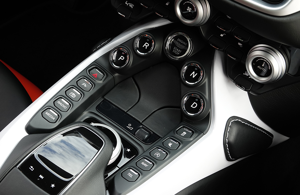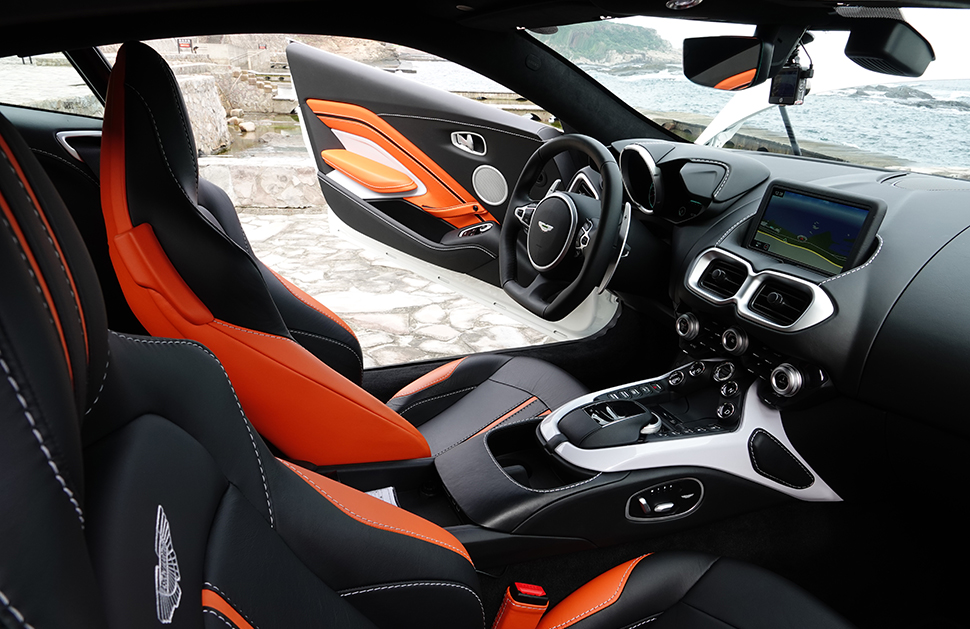 相較於義大利及德系對手,馬丁在超跑市場中自成一派,長車頭、短車尾的比例雖然已被視為前置引擎後驅跑車的基本要素,但出自馬丁之手的每一道線條、每一個轉折與稜角就是特別不同,車艙則與英國傳統工藝相呼應,即便這次的Vantage已經變的較為年輕、花俏了些,但精緻的皮革作工,使用起來就手的按鈕操作,整個車廂的完成度與細節都是這個品牌之所以為人推崇的關鍵,另外想特別說說的就是這次在置物空間的規劃終於跟上時代,儀錶板和中央螢幕顯示的資訊清晰易讀,兩個杯架及扶手內可放置手機或小雜物的空間,沒的挑剔。