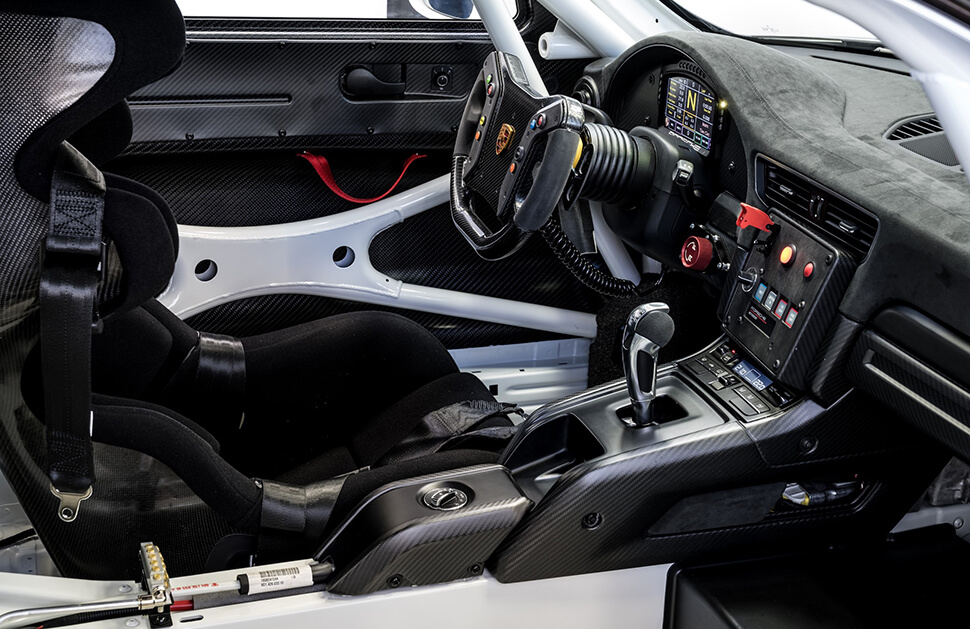 覺得一身馬丁尼塗裝在馬路上流於矯情?那就開著它直奔賽道。保時捷剛在洛杉磯車展發表可供車主於賽道日奔馳的911 GT2 Clubsport,輕量化車體搭配鋁合金複合材料,車重僅1,390kg,裝備碳纖維強化塑料前廂蓋、車頂和大尾翼,加大進氣孔,並採用從前廂加油的115公升FT3安全油箱,以及符合FIA規格的Recaro賽車桶椅,碳纖維方向盤和全彩數位儀錶取自19年式GT3 R,大家熟悉的六點式安全帶和防滾籠自然不會缺席。