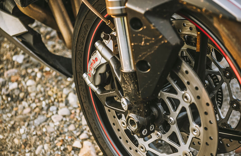 跟初代目Speed Triple 1050相比,認真說Street Triple RS少了以往的機械感溫度,Street Triple RS排氣量少上快300c.c.之多,動力輸出卻又大上老傢伙不少,RS版本配上前41mm Showa倒立式前叉,後Ohlins STX40可調中置單槍避震,再輔以原廠強大的TCS巡跡系統傍身,Street Triple RS駕駛動態回饋真的太過於安逸少了些熱情,伴隨在後的高轉聲浪卻又不時尾隨,提醒著我輩胯下絕非輕易駕馭的囊中之物,好在因應這強大的動力配上Brembo M50四活塞卡鉗,提供強大且穩定的制動力,也同時賦予駕駛些許安心感。