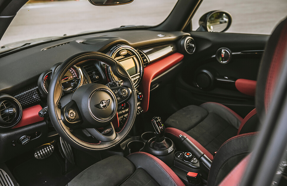 何況Jason和Ray未必那麼輕鬆愜意,尤其是Jason,要知道三輪重機其實遠比看起來不易駕馭。Cooper S JCW就真的非常……輕鬆愜意,一直以來,我這隻未持有重機駕照的飼料雞就樂於作一隻飼料雞,這次也不例外,完全滿足於這個增之一分則太大,減之一分則太小的2+2座空間。繞中控螢幕四分之三圈的彩色光環有點使我頭暈,除此之外這是一個十分討喜的車廂,黑紅雙色比例恰當,Alcantara桶椅徹底征服你的肩、腰、臀,低坐點帶來跌入駕駛艙的戰鬥感,移至中控台的行車模式切換鍵操作更直覺順手,按下一旁鮮紅色的引擎啟動鍵,在小尺碼的襯托下聲浪更顯渾厚。