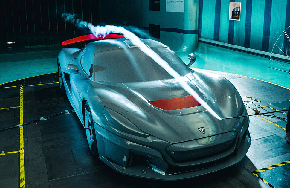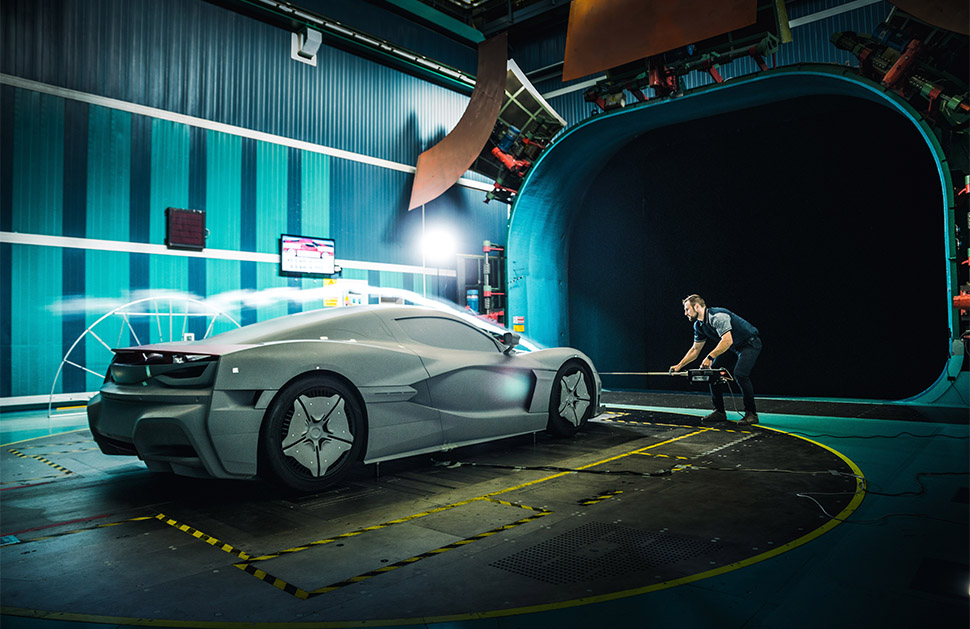 Rimac建立了C_Two的全尺寸模型,通過一些複雜的測試程序可以準確測試各個設計成果,例如:空氣動力套件、懸吊系統、煞車系統及散熱風扇等,經過反覆測試相關部件並與CFD結果進行比較。