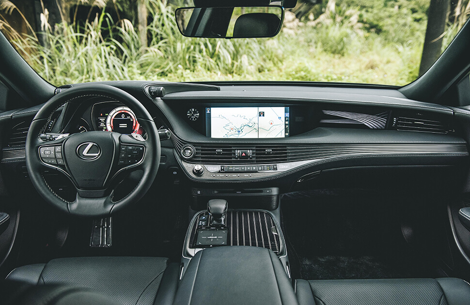 第一眼看到五代目LS的時候,就像當年看德州殺人魔來的驚險,怎麼說?前往深黑又昏暗的地下室取車時,一對風格強烈的蘇洛風味LED大燈在我面前燃起,當然小編並非身處死星,但異於常人的日行燈可讓我身感冰冽萬分,而經過原廠精心改良的特大號紡錘型水箱護罩盡入眼簾,搭配兩側氣壩襯托,光正面就已確認此物氣宇不凡,在這保守又枯萎的人間中,總是帶來點生氣。而五代頭目卻也是歷代中軸距之最(達3125mm),取消了舊時代型號還有L的長短軸分別,下盤裝上了從LC500殺肉而來的GA-L後驅平台,降低了15mm的車高,可想而知,下移帶來的穩定性則是接踵而來的後遺症,而挪用來的小可愛LC縮小版尾燈,經由內部L型LED排列,雖然跟大哥LC相較還是老實了些,倒也符合LS的低調奢華風味,而下方與保險桿融於一體的排氣飾管,一直以來都是LS車系的獨到特色。