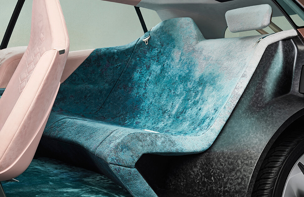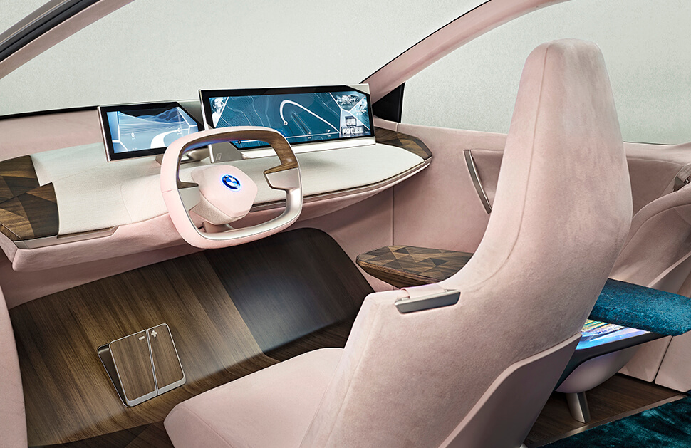 Vision iNEXT採用無B柱對開式車門設計,搭配觸控式門把,上下車更便利。前擋風玻璃與全景玻璃車頂連成一氣,提供絕對開闊的對外視野,並以攝影鏡頭取代傳統車外後視鏡。簡潔的車廂使用環保再生材料製做,其「Shy Tech隱形創新科技」可透過剛發表的「Hey,BMW」啟動,並連線至雲端。在「Ease」自動駕駛模式下,其功能可於任何表面上顯示並操作,從而取消傳統的實體按鍵。