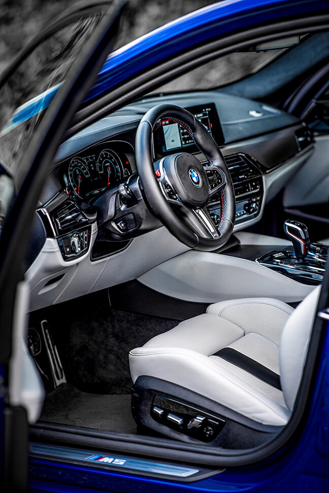 它根正苗紅,恪守家規,精準地詮釋了羊皮狼的定義。關於這點,你將在油門洞開全力狂奔時獲得驗證,但在那之前,建議閣下花上一段絕對不短的時間搞懂兩枚地獄火M式飛彈發射鈕、排檔桿和其周遭按鍵、iDrive旋鈕與中控螢幕之間的複雜關係,只因這600匹、76.5公斤米巨力只消一指即可從時興的四輪驅動返璞歸真全數灌往大後方,車手與M5的初次親密接觸千萬馬虎不得。你可以選擇M部門推薦的懶人包,亦可自行調配各項設定,依駕駛喜好量身訂製屬於自己的懶人包,只消一指即進入戰鬥狀態。