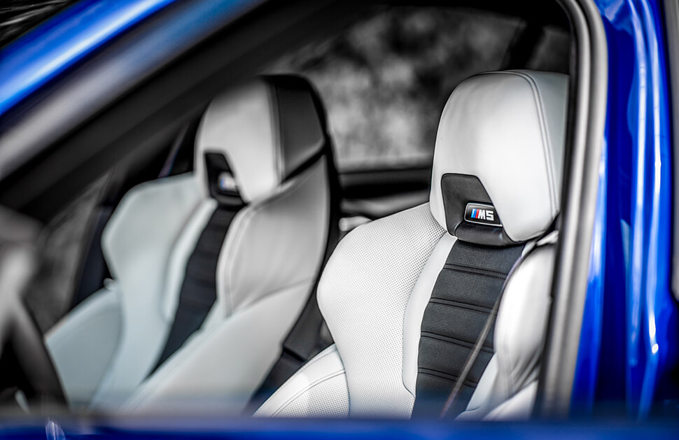 有人認為它不妨精簡一些,但至少,天底下大概沒有比坐在這張跑車椅上動動手指輕鬆的事了。它就像一隻溫柔巨掌,無懈可擊地承托著你的身體,也許是我坐過最有魄力的一張椅子,肩部支撐性無出其右,頸部的M5徽飾還會發光,隆而重之地簇擁著它的駕駛。環視車廂,那幾點鮮紅煽動意圖固然再明顯不過,卻未至於使人戰意昂揚,我的意思是它絕非那類好戰鬥獸,儘管你知到它身懷無儔動力,仍傾向保留實力,而非一下子把牌全部攤開。