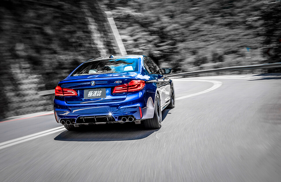 F90當然也有清晰的路感,只是參雜了一定程度的電子干擾。為了能在彎中撐住仍以鋼鐵為主的龐大身軀,F90的懸吊不得不犧牲一點舒適性,而就一款正宗M Car來說,聲威還可以再響亮些。兩個時期的M5都不是那類想把車手拆食入腹的惡鬼,至少車手始終握有主控權,在多數情況下無需太過分神留心後輪抓地力。你肯定不會拒絕車尾滑來滑去的車,但這裡討論的是超級房車,汽車一旦涉及房字,考量的就不再只是貪圖享樂不知死活的自己,你真放心把一家老小裝在一座遇水則發的不定時炸彈庫裡嗎?不太好吧。