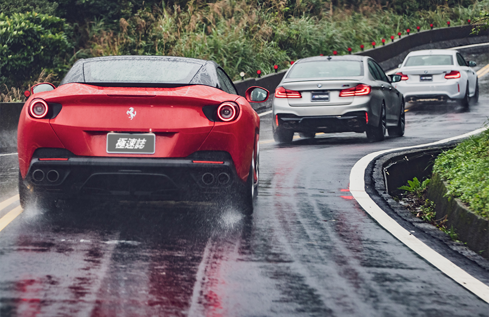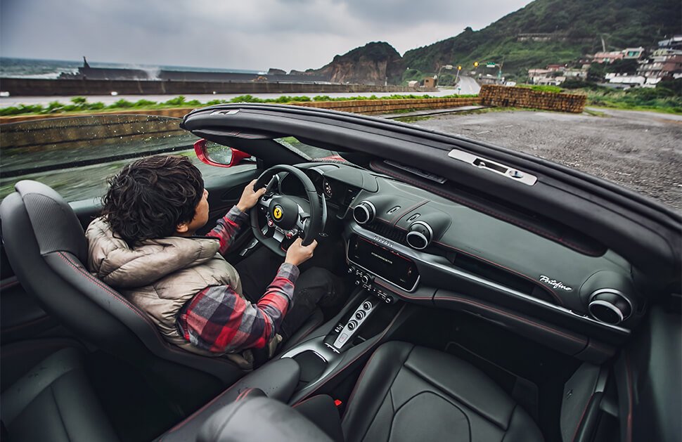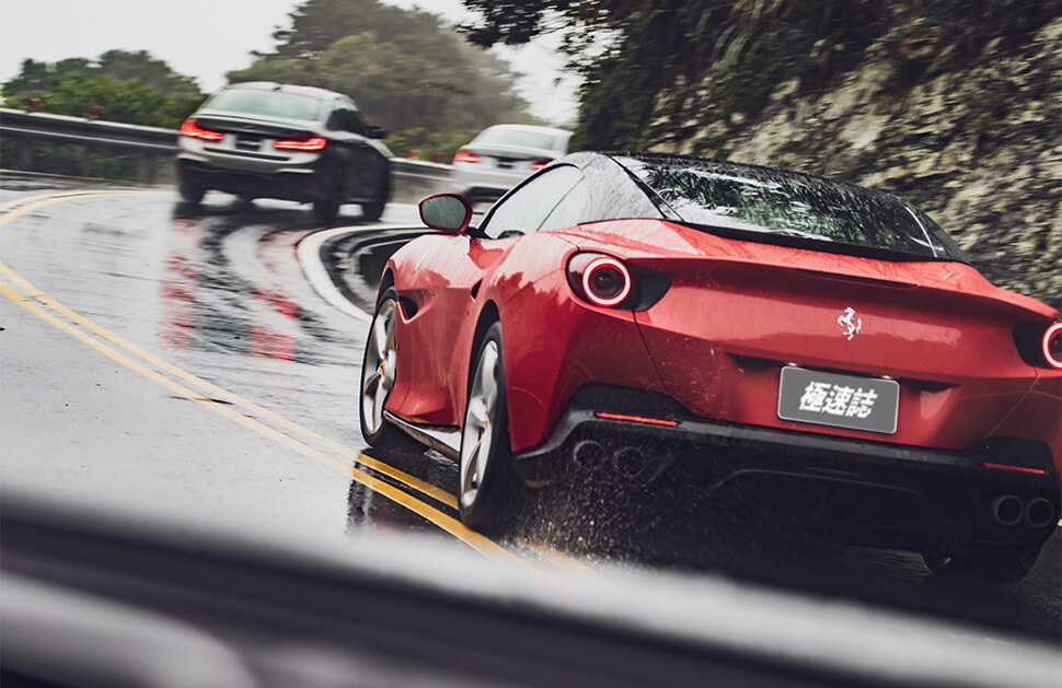 那車廂設計仍然是典型法拉利的操作邏輯,但置身其中不會覺得設計師有偷懶直接複製貼上之嫌,用起來一樣順手,尤其那方向盤在拐彎時可以傳輸大量的路面抓地狀況與資訊至你的手中,能夠清晰掌握這些動向,相對讓你的信心指數也跟著漲停板。即便這次天公不作美,一整天只找到短短幾分鐘的空檔一享鋪天蓋地而來之開篷樂,但反而讓我發現即使雙門狀態亦相當得體,轉向渾然天成,加速之凌厲甚至不遜於488 GTB,所以當你大腳油門全速鞭策的當下可得格外專注,千萬別因路邊的短褲長腿妹仔而分了心。