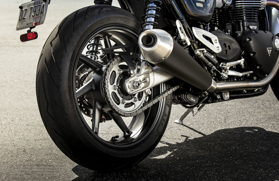 從T120身上,Speed Twin取得了寬大的車把和平坦的坐墊,向後延伸的腳踏後移以及高聳的排氣尾段便從Thruxton移植。另外,56.3英寸的軸距位於Bonneville的57和Thruxton的55.6之間。在軸距取得一個平衡點,能比T120更具操控動感,但又比Thruxton來的更加便利。