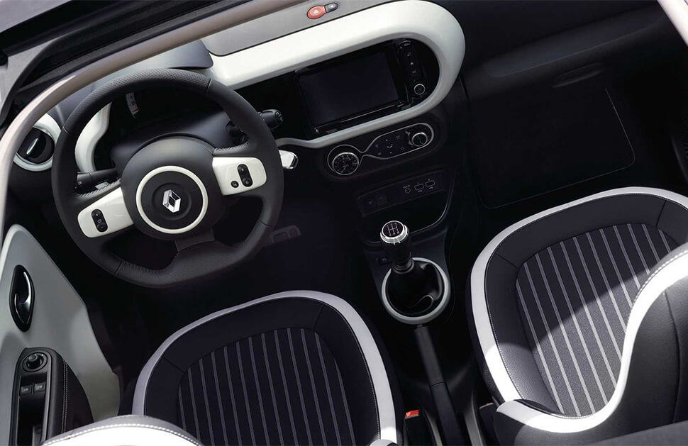 Twingo內艙裡,頂規配備了更新的7寸娛樂資訊螢幕(可搭載Android Auto和Apple CarPlay)和全新設計的中央鞍台及座椅,雷諾另外供上素白儀表板塗裝,經過重新配置的中央控制台,付上一個可調節的杯架,最後還還佛心提供雙USB接頭傍身。