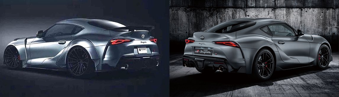 將原廠版與改裝版的New Supra照片擺在一起,這樣就很清楚可以看出彼此間的差別,Prior Design將New Supra原本頗具特色的前保桿進氣口改回上一代Supra傳統的樣貌,這樣看起來雖然少了一些創新,但對某些老車迷來說也更符合他們心裡想要的New Supra模樣。我們相信,接下來將會有更多的改裝廠推出New Supra改裝後的預想圖來搶客人,第二回合的改裝車P圖大賽即將展開。