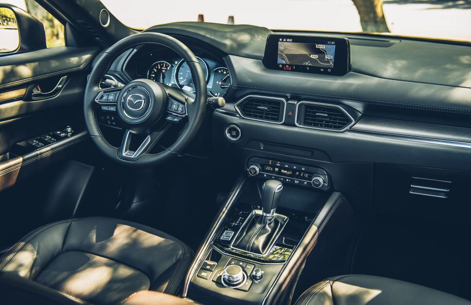 MAZDA近年來針對車輛內外的設計頗獲好評,是大多數人一看會稱讚的。這點在新年式的 CX-5身上也可看到整體車輛,不論在外觀設計或是內裝質感等方面又做出一種接近吹毛求疵的精進程度。全新設計的19吋鋁合金輪圈,傳達出沉穩且成熟的視覺感受,也更進一步在SKYACTIV-G 2.5頂級車型採用專屬的深鈦色塗裝。同時車艙採用柔軟細膩的高階Nappa真皮材質鋪陳,搭配雙前座導流式通風與電動調整功能,提供細膩乘坐享受的同時,也帶給車內駕駛與乘客舒適愉快的乘車品質。除了配備堆疊之餘,MAZDA也特別加強了高級化的氛圍,內裝選用深色磨砂處理的皮料頂篷,搭配深棕色的座椅皮革,加深了CX-5以往較少見的高級或尊貴氣息,而看倌們在MAZDA 6中首度見到的特殊打磨處理的實木飾板,同樣為CX-5巧妙地將貴氣與親切做出均衡搭配。
