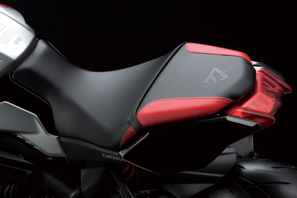 方型頭燈同樣是Katana的必備要件,這次採用堆疊式LED照明技術,車尾的LED燈則與後座整合在同一個模組之中,相當突出的設計。後牌架改為固定在後搖臂上頭,整體設計讓車尾看起來更簡潔。這次的座椅高度屬於展現高運動性的825mm。