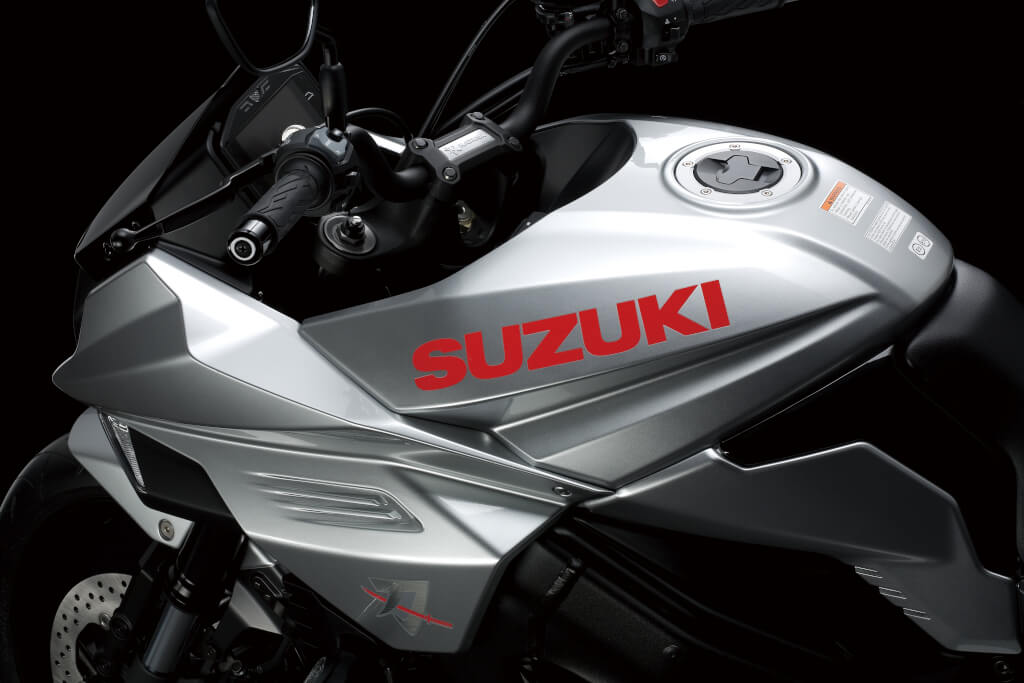 延續過去的經典元素的新Katana,同樣有著來自日本武士刀的線條靈感與筆觸,稍微前傾的騎乘姿勢,配上一體式的強化車把,加上那油箱和整流罩的特殊線條與輪廓,一眼就可以認出是Katana,有著相當高的吸引力。油箱上的典型紅色鈴木字樣同樣延續自過去,甚至連整流罩的角度也跟過去相同,如刀鋒般銳利的風格極具侵略性,車色就更不用說當然是經典的銀色。