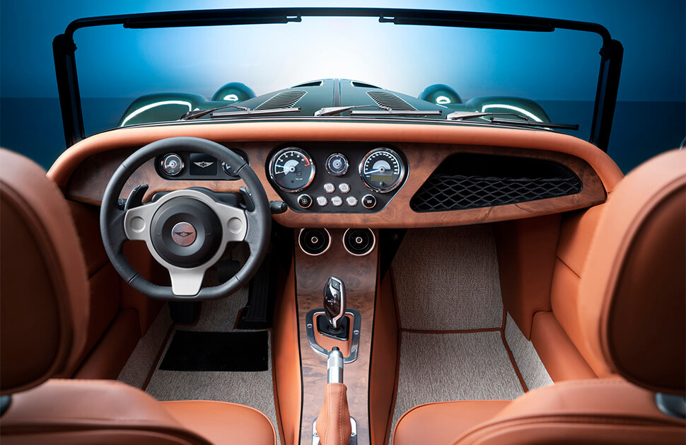 至於經典的瀑布式水箱護罩及圓形大燈仍舊保持傳統留下,只是頭燈從傳統燈泡改成為LED照射方式,用上高科技大燈照明亦是品牌的首例。另外比較特別的是,Plus Six將用上數位儀表,雖然尺碼不大目測只有3-4吋,但駕駛依舊能在上方看到時速及轉速的呈現,對於19年以來沒有推出全新車型的Morgan ,還另外做了一個相當大的改變,就是在Plus Six上採用了ABS煞車技術,至於內裝鋪陳對Morgan來說本就是拿手好戲,能依客戶需求生產出獨一無二的內裝及塗裝。
