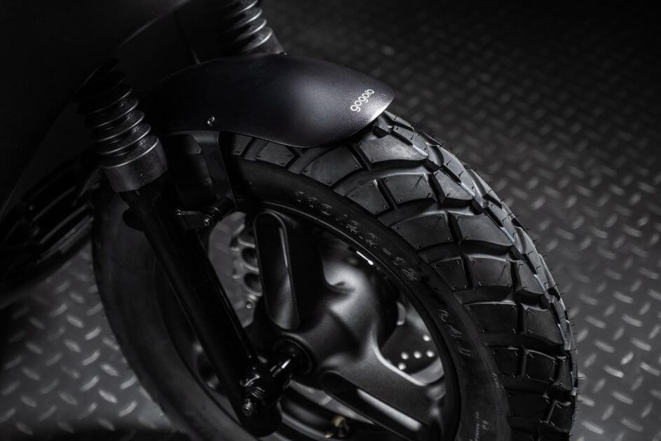 Gogoro 2 Rumbler採用統一12吋的前後胎框尺寸,這是目前白牌機車市場裡最主流的規格,雖然標配是用越野風的多功能胎,但是12吋胎在日後換胎的選擇性會非常豐富,價格也會更親切宜人不少。馬達出力與性能數據表現方面則是與Delight車型相同,但因為多功能胎的滾動阻抗較大,所以最大續航里程有稍微縮水為110公里(定速40km/h),88km/h的極速也會小降至86km/h,這點大家倒是不用太擔心,日後換上一般道路胎款應該就會回復既有性能。