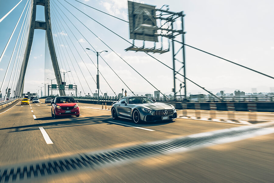 看來兩者在市區的目光吸引度各有千秋,畢竟兩車的外型都堪稱無與倫比,smart的tridion安全車體與鈑件可以用上各式各樣的配色組合,四個輪拱向外突出的造型也很有運動感。而GT R則是有著傳承自300SL、SLS AMG而來的長車頭、短車尾仿古風格,在時下超跑界也是走出自己的路數,再加上一些張牙舞爪的空力套件組合,吸引愛車人買單的確不是難事。