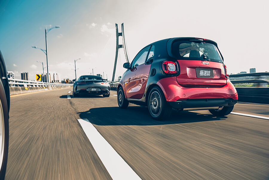 身懷一具999c.c三缸引擎,雖不像Forfour腹內奉養一顆蝸牛增加動力,馬力及扭力也只來到羽量級別的71匹及9.3公斤米,935公斤的體態便是那壓倒稻草的一大功臣,對了對了,這代裝載的六速雙離合變速箱則是讓人放手一搏的身後靠山,倒也不是說這顆變速箱調校得多麼令人稱奇,而是跟前幾代的自手排變速箱相較之下,每每變招出招都相當綿密。至於下盤,RR的特性在Fortwo身上來的更為深刻,極短的車長配上相當精準的轉向,油門一飲而盡還有些許貼背感受,怠速低轉抖動回饋的情況可在轉速拉高後舒緩不少,除此之外,除了高速路段之外,無論山道或小巷,要緊咬著前方掛著AMG名牌的GT R倒也不是啥憾事,話說到這裡,球褲依舊愛著這胯下不過一噸的雙門小車。