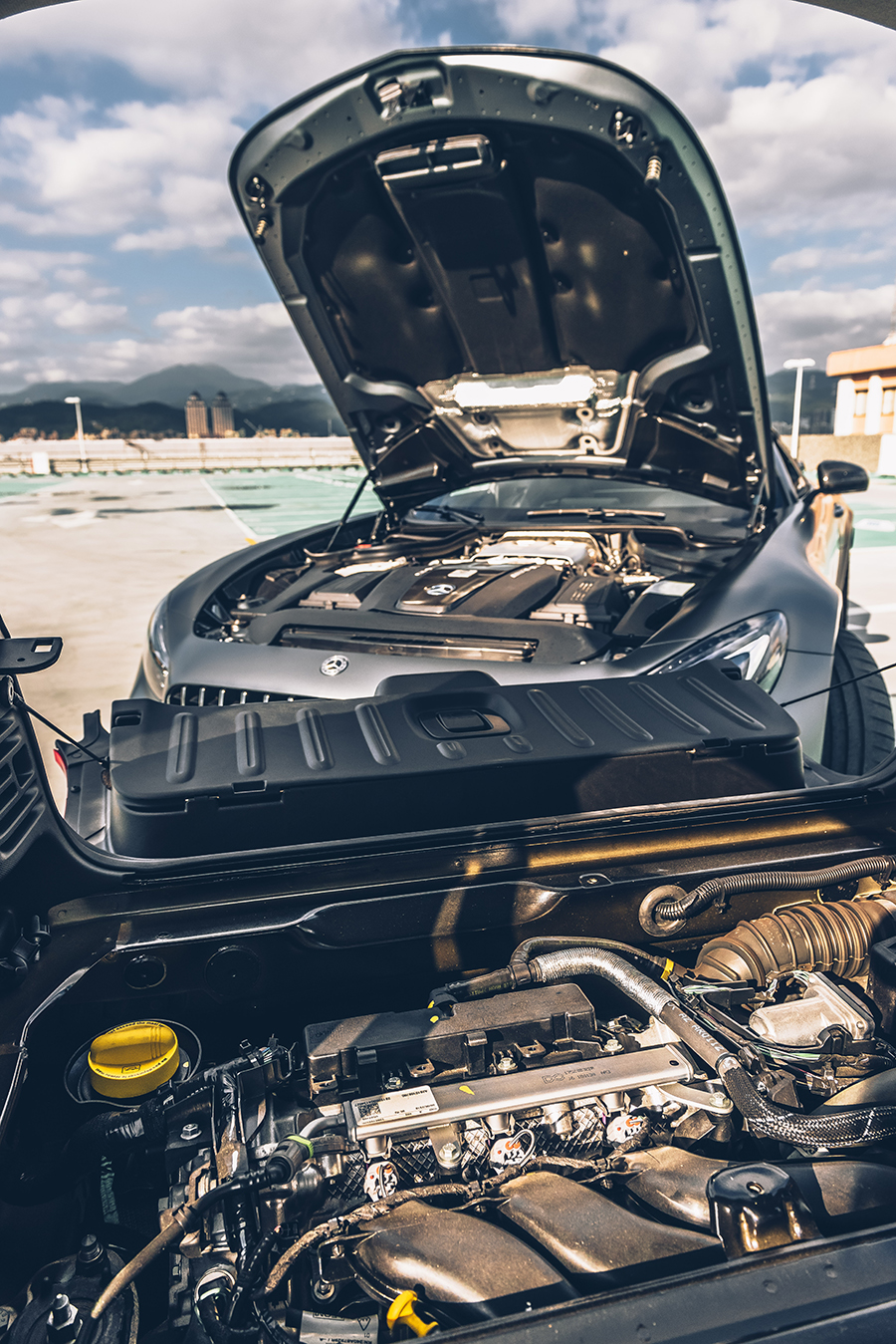 結束夾縫中求生存的部分,快速道路是GT R可以稍為伸展筋骨的地方,再怎麼說這是一輛有著4.0升V8引擎傍身的跑車,這具引擎目前也廣泛運用在AMG旗下的各式高性能車型。輔以七速雙離合器自手排變速箱,不論是加速力道或聲線,都是孔武有力的那一類。但是相較與老AMG的暴力派特性,現號的GT R其實帶有幾分流暢如絲的回饋,重加速的細膩度讓人保持對車輛的心把握度,只是那極快的加速節奏與瞬間壓縮前方距離的感覺實在還是令人有點噁心,不過複合材質碟盤大號卡鉗確能輕易的控制回正常車速,唯一令人感到不安的是那對性能明顯衰退的米其林CUP2跑胎,在此也奉勸各位買主們,好的性能,最終還是要仰賴新鮮好用的跑胎才能相互對應,缺一不可。
