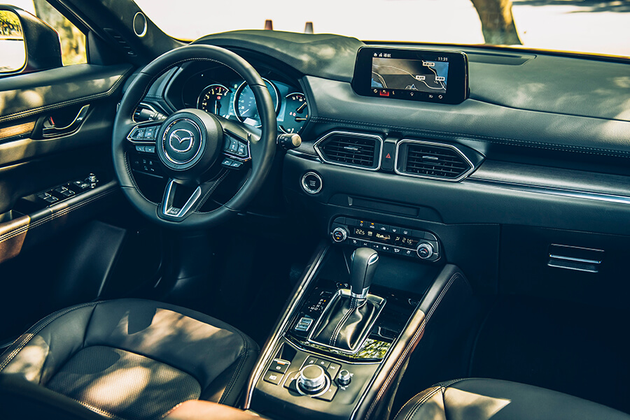 Mazda近年來針對車輛內外的設計頗獲好評,這點在新年式的 CX-5身上也可看到整體車輛,不論在外觀設計或是內裝質感等方面都更見細膩。全新設計的19吋輪圈,造型更加成熟穩重。Skyactiv-G 2.5頂級車型也具備專屬的深鈦色塗裝。同時車艙採用柔軟細膩的高階Nappa真皮材質鋪陳,搭配雙前座導流式通風與電動調整功能,提供細膩質感同時,也帶給車內駕駛與乘客舒適愉快的乘車品質。而頂級車型再配備堆疊之餘,廠方也依循早先Mazda 6改款的方式,特別加強高級化的車艙氛圍。內裝選用深色磨砂處理的皮料頂篷,搭配深棕色的座椅皮革,加深了CX-5以往較少見的高級或尊貴氣息,而看官們在Mazda 6中首度見到的特殊打磨處理的實木飾板,同樣為CX-5巧妙地將貴氣與親切做出均衡搭配。