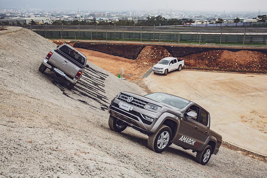 不免俗地,砲彈坑、陡坡起步、緩降這些必備關卡我們也都有所嘗試,對於Amarok來說,基於集團內各品牌在四驅系統的研發都有相當成績,這套整合獨立後差速器的電子四驅系統的確是非常聰明易用的,而且即時動力分配的能力對於日常操控方面也有幫助,遇上惡劣路況也不用太過操心,切下越野模式便會啟動後差鎖定功能,對於脫困能力也有一定的幫助。