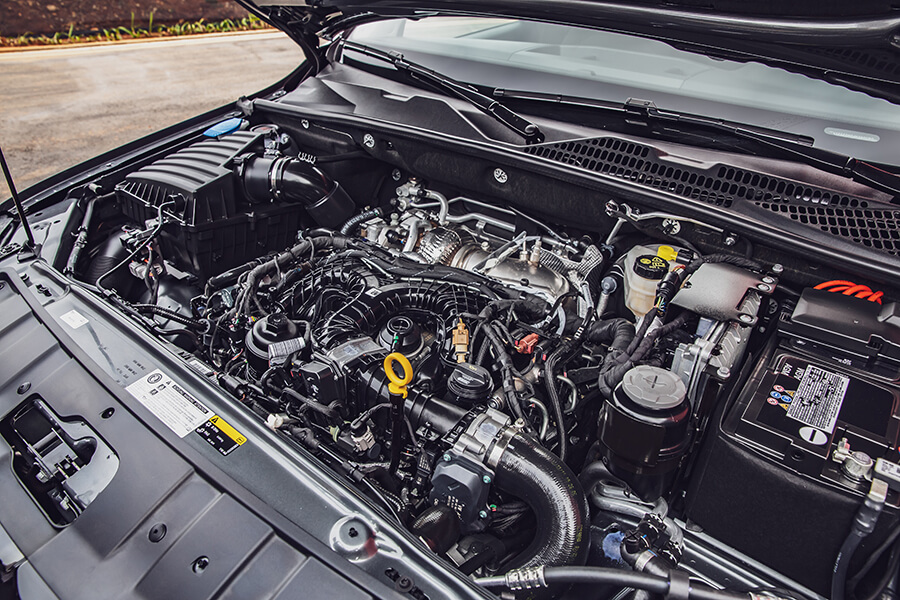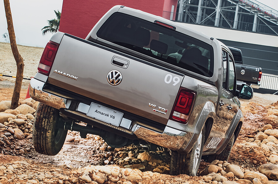 這具3.0升柴油引擎的確有點來頭,要知道目前大福斯集團裡的六缸柴油引擎可是僅此一具,別無分號,而且要提供給福斯、奧迪以及保時捷所用,各項設計想必是花了不少心思,最強版本有著近300匹的最大馬力也是鐵錚錚的事實,這具引擎潛力確有目供賭。當然對於一輛皮卡來說,著實用不著那麼大動力,因此在Amarok上提供了兩種數據,在這次活動中清一色選用204匹/51.0公斤米的Highline車型,另外算是旗艦版的Aventura則有224匹/56.1公斤米,統一附上8速手自排變速箱以及附上後差鎖定功能的電子全時四驅系統。