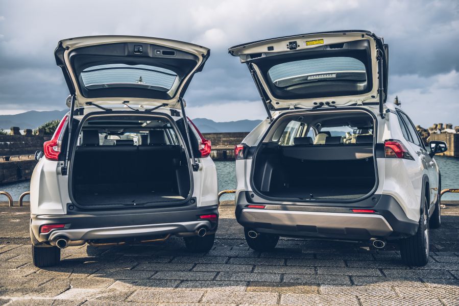 第二是車內空間感,CR-V有著很方正寬敞的車體,加上座椅著坐點低,車艙裡的寬敞度的確一把罩,而且那極度垂直的D柱在後行李箱的空間規劃上也更有利;相對於RAV4,這代新車做出了比較流線的造型,多多少少犧牲了一點高度,至於後座部分,我覺得比起前代來得坐起來穩當,但空間就不如CR-V來得寬敞無壓力了。
