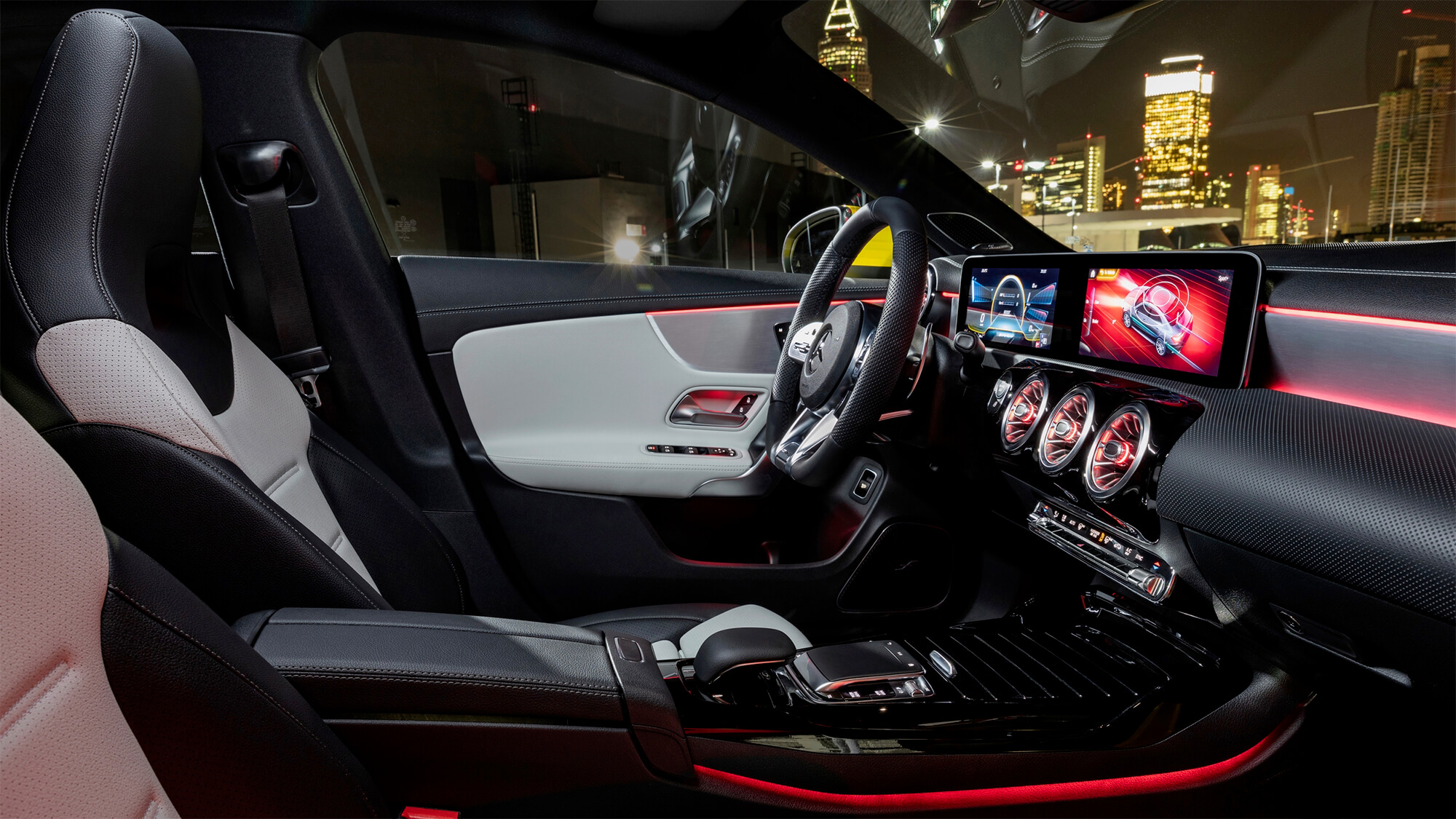 透過輕量化的前懸吊組件及強化過的煞車,CLA 35跟A 35在下盤升級也是相同的,而內艙裏,CLA 35同樣套上了雙10.25寸數位螢幕,上頭則同時顯示儀表資訊及娛樂訊息,自然還有品牌內最夯的MBUX語音操控,而內建的AMG Track Pace應用程式,能夠儲存油門輸入數據、G力及單圈秒數,並可模擬駕駛參考縣提升車手實力。