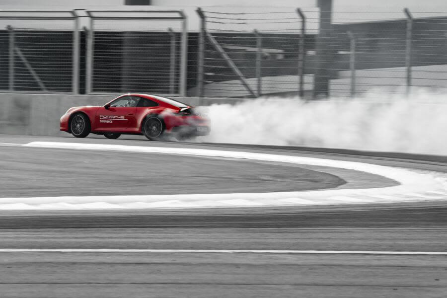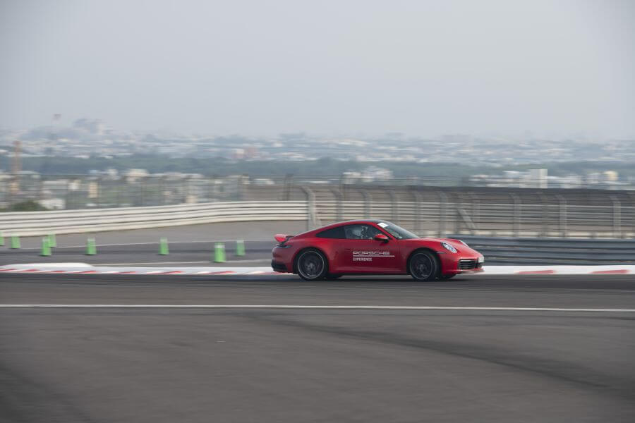 隨著教練帶隊速度加快,992跑起來的模樣還是虎虎生風,而對我來說印象較深的是Carrera 4S,這主要是因為麗寶賽道有比較多帶有高低落差的彎角,Carrera 4S在這些路段中所展現的超強巡跡性與抓地能力,能夠讓我放膽的補下油門去體驗另類雲霄飛車的快感,前後輪之間的驅動分配與默契,實在令人好生驚訝,把這450匹馬力盡可能的釋放,實在是又快又安心。