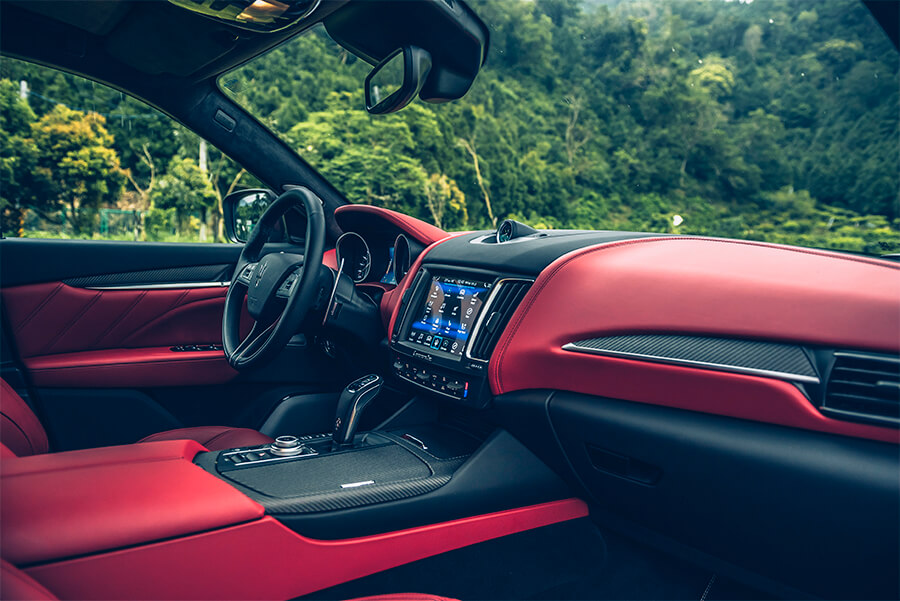 不過車室內就各有千秋了,Maserati內裝陳設能力總是引人入勝,大量真皮披覆與雙色組合實在恰到好處,搭配不同的細節飾板也是有不同的風味。以我們手中的Trofeo來說,黑/紅雙色配上保留實體編織質感的碳纖維飾板,性能味極為強烈,比起一般消光件更有生命力與觸感;另一輛GTS以亮棕色為主體的組合也是充滿義大利風情,亮面烤漆的碳纖維飾板、方向盤還有換檔撥片,組合起來的視覺衝擊更是巧妙。