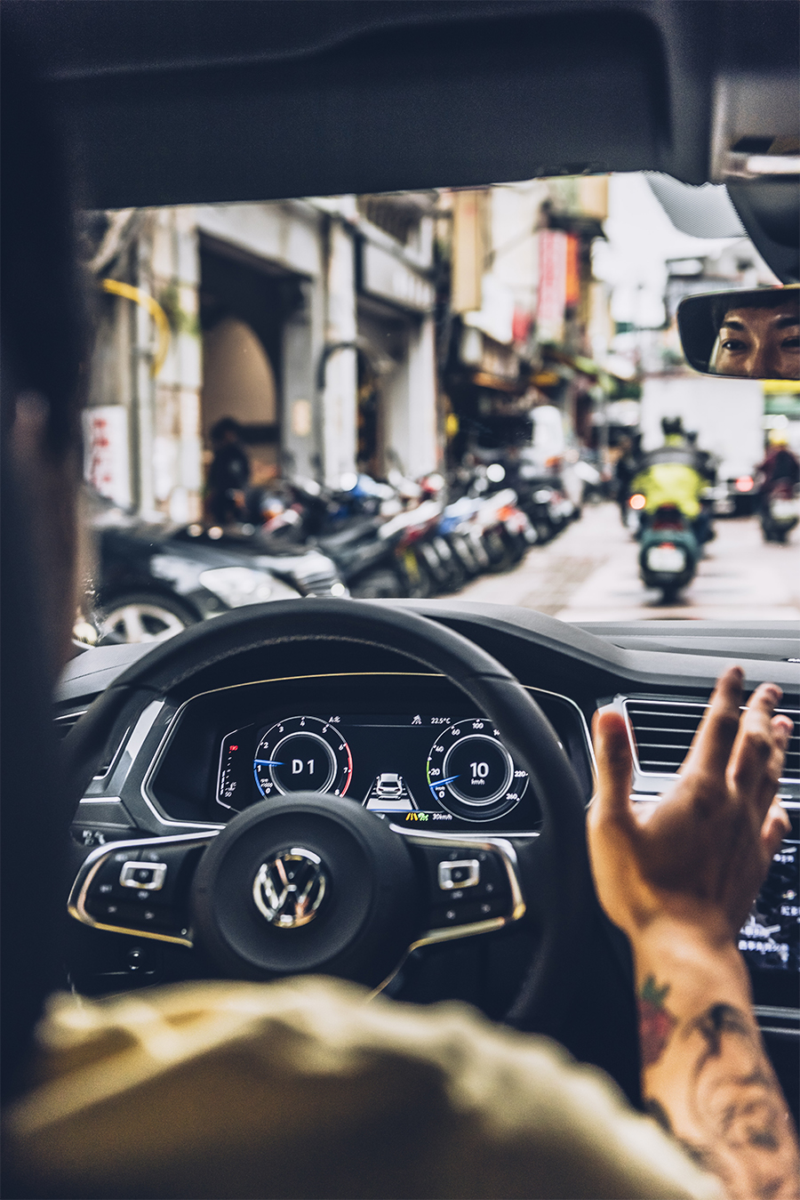 廢話不多說,就來試試這次新貨色吧,全面搭載的IQ.Drive到底能帶給我多少信心還不清楚,但前陣子才駛過的Focus確實有一套,同樣標榜擁有半自動駕駛系統的Tiguan,按理應當能給我同樣的回饋感受,擁有全速域(0-210km)的ACC系統,表示在靜止狀態下即能開啟作動,實際上也是如此沒太大問題,倒是能不能鎖定二輪這樣的小型標的物,讓我跟攝影Jackal存有疑問,等待紅燈的恰巧前方就有一輛機車,哇,真的能用ㄟ,而且作動過程還異常細膩,精準度也比Focus來的優異,車道偏移修正輔助也恰如其分不會讓駕駛膽顫心跳,所有的步驟皆暢快平順行雲流水不卡頓,如遇到突來的插隊車輛也能充容應付,IQ.Drive的火候已達成熟沒啥好挑剔的了。