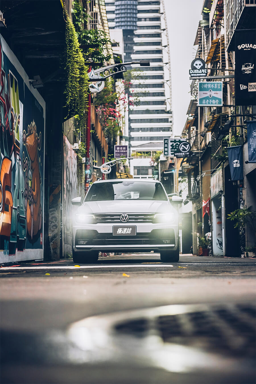 此次開上Tiguan自然不會是我第一次的初體驗,嚴格來說這次開的Tiguan跟之前開過的版本,論外觀跟內裝其實沒啥差異,雖然官方沒有針對外觀或是引擎作出調整,但有段時間沒會會Tiguan了,球褲依舊還是對Tiguan這樣的方正設計感到安慰,畢竟現在路上跑的SUV大多不是流線就是圓潤,對於我這樣本格派的老傢伙來說,四方成正的線條設計才對我的味;而冠上R-Line套件的Tiguan,第一眼就會讓人有種堅不可摧的刻版印象,層層堆疊的硬朗線條不時散發出硬漢風味,更別說腳上那雙20吋看來相當跋扈的輪圈,目前市場上能維持這般斯巴達風格的,福斯亦是這種Style的佼佼者了。