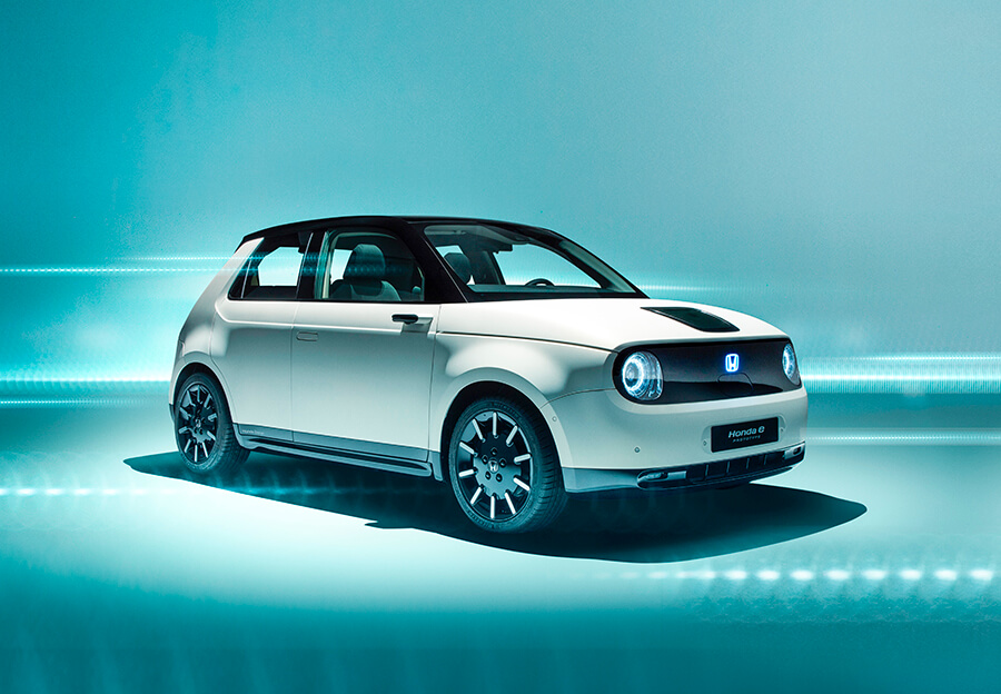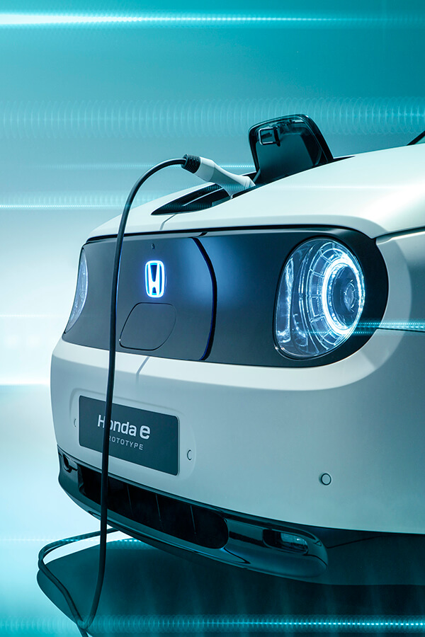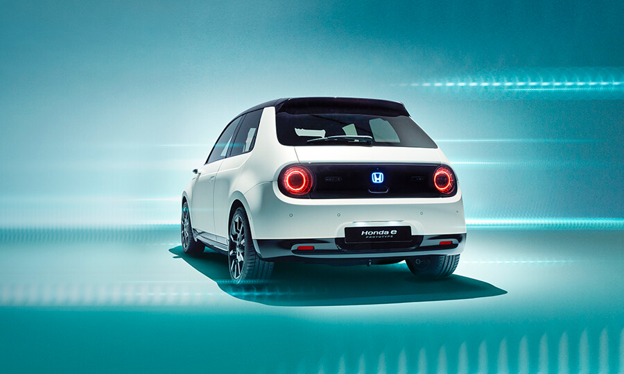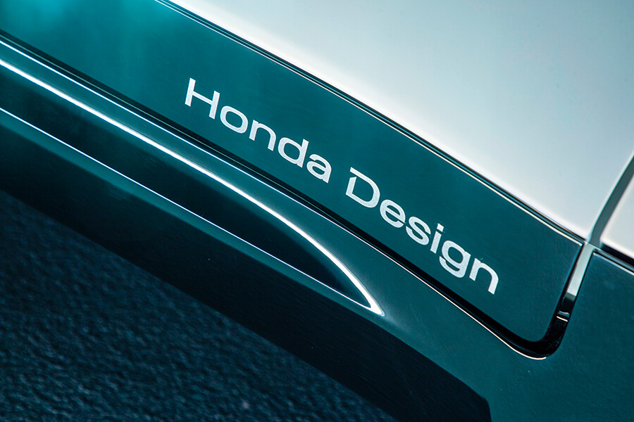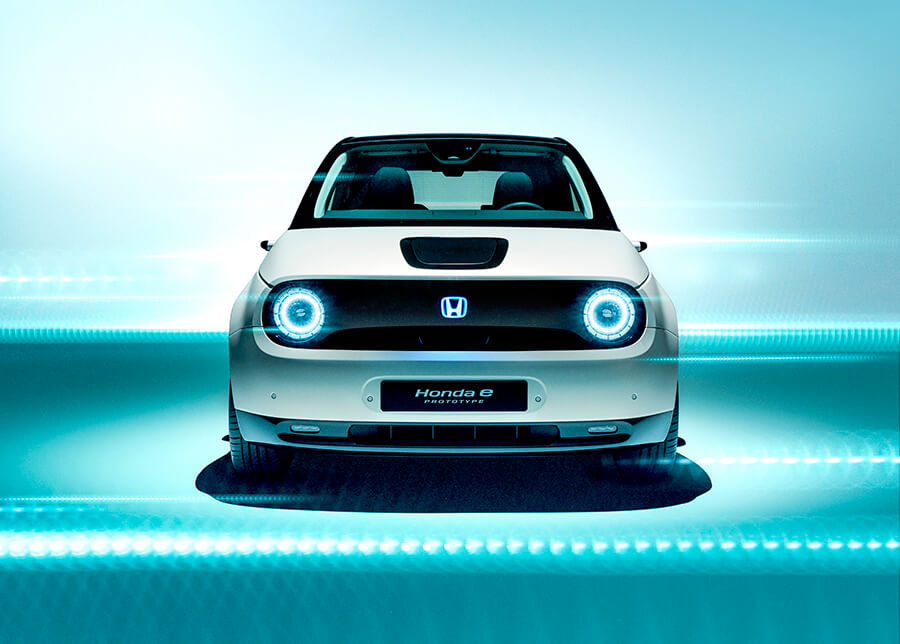 車頭正面是一幅橫跨左右兩端的黑色凹型鑲板,其弧度取決於面向前方的鏡頭和紅外線雷達感應器(暗示E Prototype某程度上具有自動駕駛能力,儘管本田拒絕透露詳情)。鑲板左右兩邊各有一盞圓形頭燈,正中央有一個賦予本田E獨特個性但有違歐盟法例的發光廠徽,車尾那邊的處理手法亦按照同一套簡潔美學。