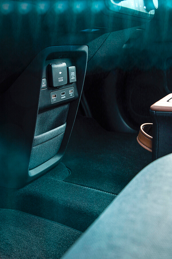 車廂方面由簡約儀錶板上一字排開的多個螢幕擔綱主角,當中包括兩個在左右兩邊各據一方用於顯示門邊鏡頭影像的六吋螢幕,一個專為駕駛者而設的儀錶螢幕,以及兩個橫亘駕駛席和前座之間的十二吋觸控面板。後者的設計原意是方便乘客在最靠近自己那邊的螢幕上進行各種操作,再用手一撥把設定內容送到比較靠近駕駛席那邊的觸控幕。如此一來,我家精於使用IT裝置的十二歲女兒埋首玩弄右邊螢幕時就可以河水不犯井水,不會對司機老爸構成太大滋擾。嫌螢幕尚未夠多嗎?後視鏡其實也是數位裝置,可以即時顯示車尾鏡頭所攝取的影像(可選擇疊加瑪莉歐賽車追逐畫面)。嗚,我覺得偏頭痛就要發作了。