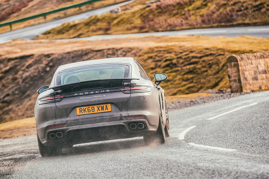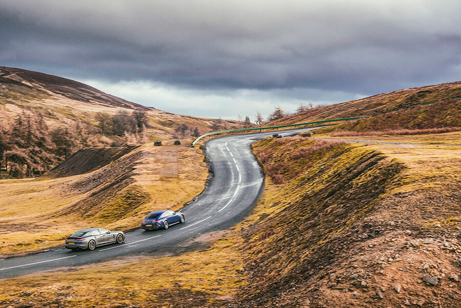 我們此刻所在的地方,是本寧山外圍的小鎮Barnard Castle,賓士AMG GT4D造成的轟動場面幾乎勝似某某皇室次要成員心血來潮到此一遊。Panamera則未有為人注意,儘管體型魁梧偉岸,灰茫茫的龐大身軀卻非常有效地與現場背景水乳交融,簡直可以說是世上車身最長動力最勁又最昂貴的福斯Passat。