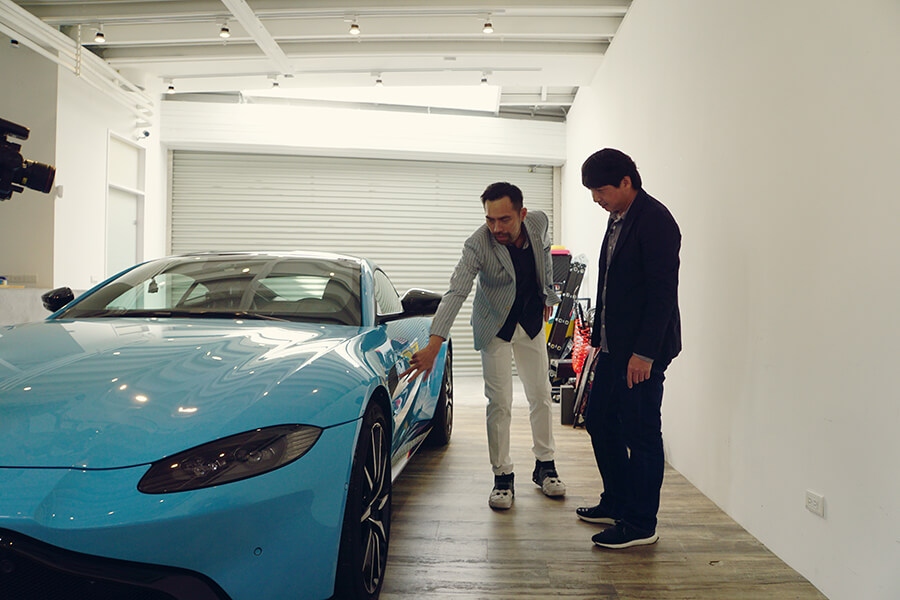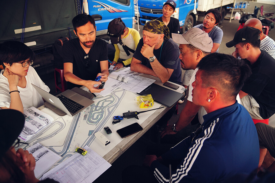 Jem:還不能給你看,我們在電影裡面是要呈現一個其實是沒有存在的亞洲職業聯賽,這個有點像是職籃、職棒,可是我覺得台灣觀眾對於職籃、職棒都有那樣的投射,可是賽車好像沒有,感覺賽車就好像是很遙遠的地方,只有幾個人在玩而已,然後我們的故事是在這個基礎下發生,所有東西都必須到職業聯賽的等級的專業,包含視覺,那我對視覺又非常非常的龜毛,所以那時候我們就找了,因為老實說,就算你用真正的賽車,那個樣子也不是我們想要的,然後我們裡面有做了22台的賽車,11個車隊,一個車隊有兩部車,然後為了讓整個顏色好看,決定所有車子的塗裝自己重新設計,自己搭配,讓每個車隊有自己的視覺,觀眾才能夠感受到是一個真正專業的車隊,而不是賽車只是醜醜的,貼的很亂。