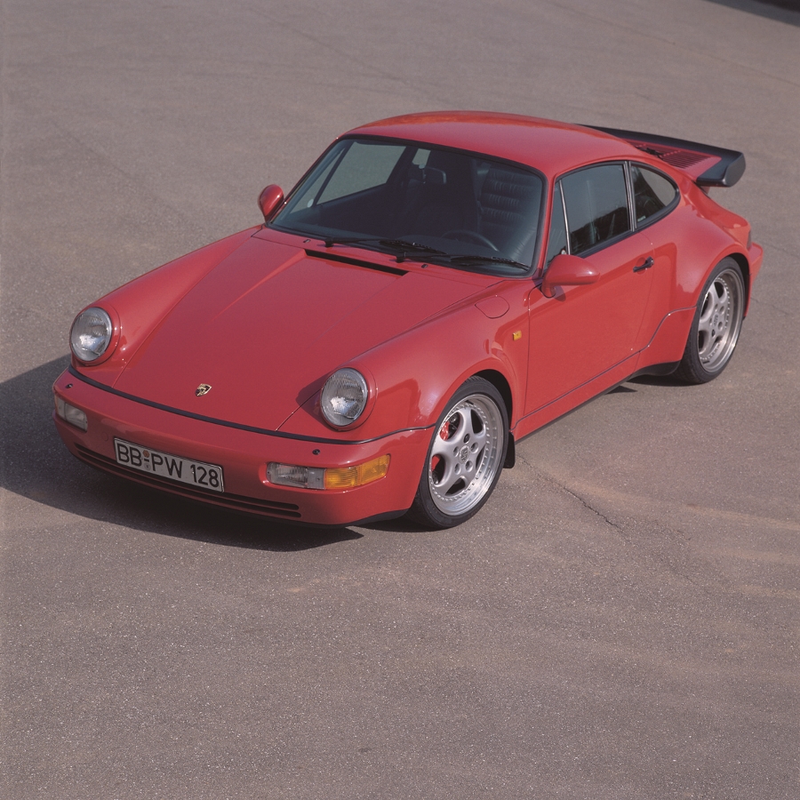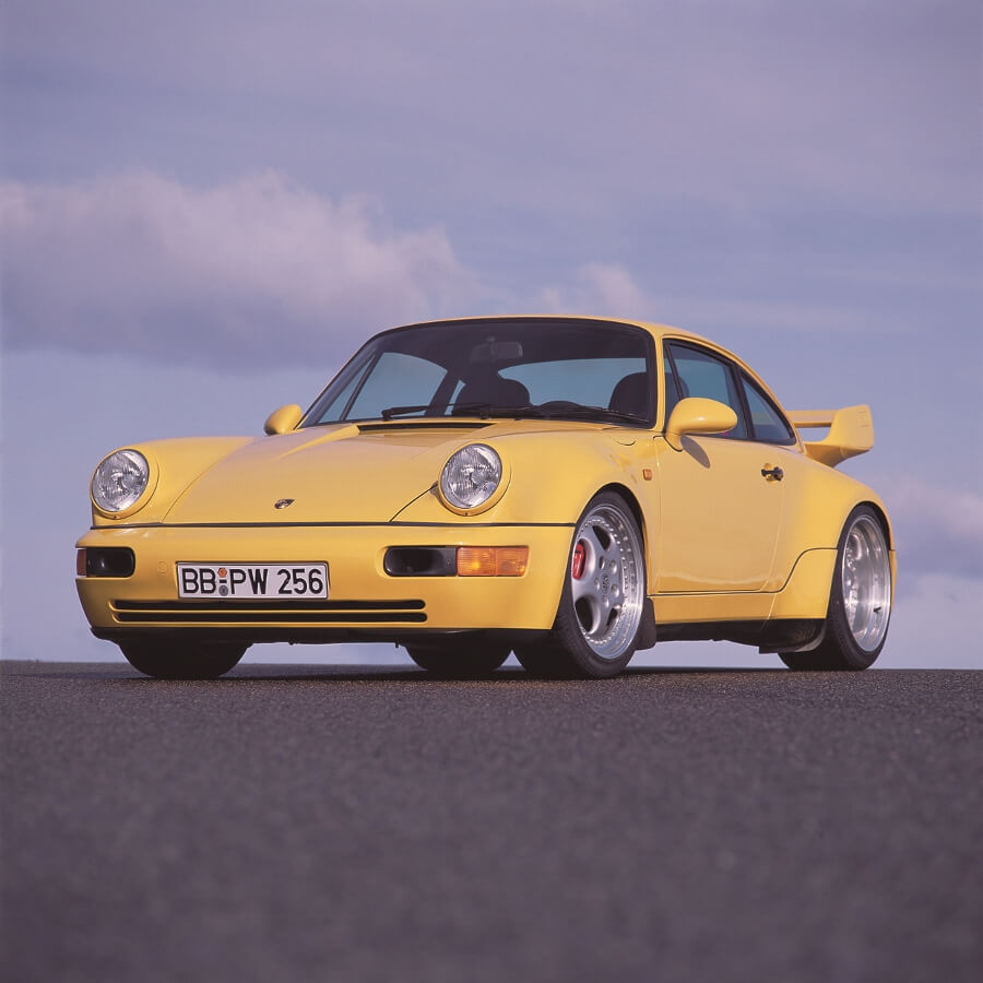 1990年現身的964 Turbo並未跟Carrera車系相同換上M64的3.6升引擎,而是仍沿用前一代930所修改而來3.3升渦輪增壓引擎,最大馬力輸出320匹,1992年推出性能更強的Turbo S,主要在於修改了引擎的進排氣結構,最大馬力輸出提高至381匹,直到1993年才換上以M64引擎為基礎的渦輪增壓版,排氣量3.6升可供應360匹最大馬力,隔一年推出的3.6 Turbo S則來到385匹馬力,這樣的數字就現在來看或許沒啥大驚小怪的,但當時這些車都還沒有任何電子循跡控制系統的協助,輪胎抓地力的水準也不如今日,這樣的功率輸出已經相當可觀。
