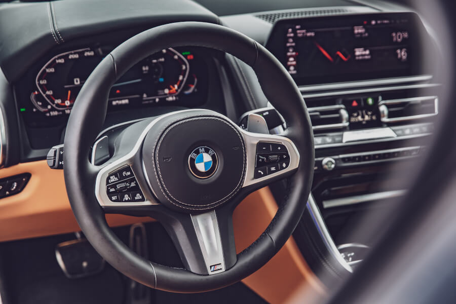 在國內試車,難免都會遇上一些凹凸不平的道路,對超跑來說,這時通常會讓你的心揪個幾下,整部車可能會彈跳幾下並發出嘰嘰嘎嘎的響聲,而M850i xDrive Coupe雖非如履平地,同樣也會感受到一些晃動,但這時車身依舊紮實且全無異音或從下盤傳來任何衝擊碰撞聲,讓人既感安心又可靠。此外,車廂設計直截了當,典型的寶馬風格,但駕駛坐姿舒服自然且視野相當廣闊,那水晶材質排檔桿當然是這次8系列最吸引人的目光焦點,不過其他開關設計與控制旋鈕的質感與觸感也都相當好,再加上做工細膩的皮革座椅及Bowers & Wilkins環繞音響(選配),各方面面面俱到,即便在市場一眾高手環伺之下亦能佔有一席之地的佳作。