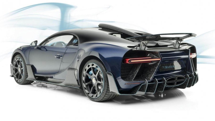 好吧,給你一杯熱茶的時間慢慢想,先來介紹這部車好了,Centuria換上重新設計的碳纖維車身套件,顯然是為了進一步改善Chiron的空氣動力特性。重新開發的前進氣口與側裙,據說可以在前後輪之間形成某種空氣動力效應的連結,伴隨這些設計的是更大的進排氣口和引擎罩上的強制進氣口,藉此優化引擎的冷卻效能,當然我們也看到了全新的分流器和大尾翼,從這裡顯然可以看出Mansory認為布加迪在外型設計上的不足之處,更重要的是有著渦輪葉片造型的全新鍛造碳纖維輪圈(前20吋,後21吋),另外也不要忽略了有如鴛鴦鍋造型的排氣管。哦,對了,還有照片上看起來如跨界休旅車的懸吊高度。