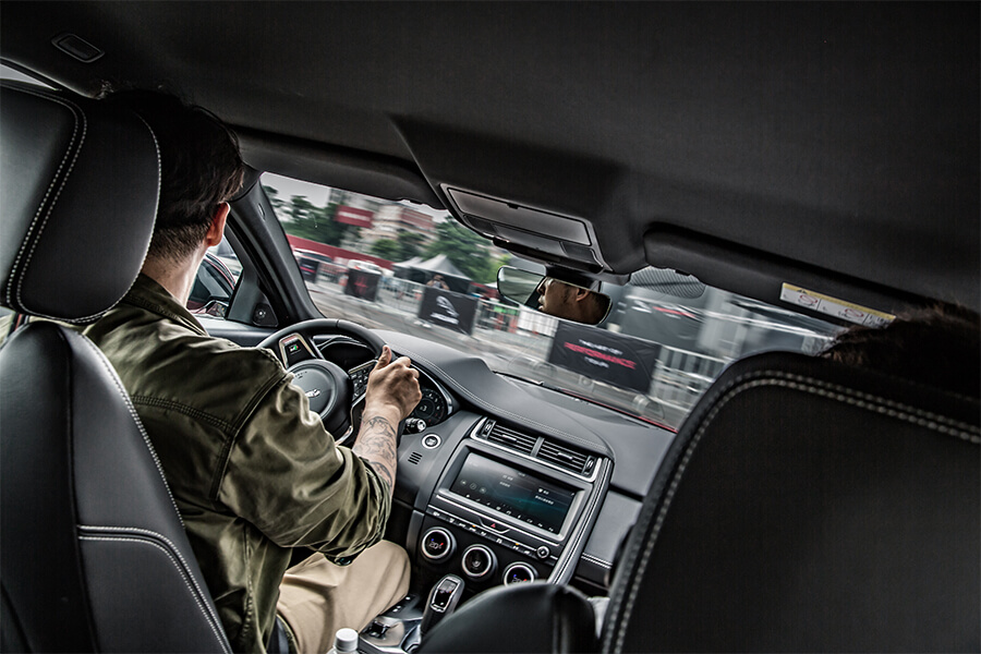 手中拿到了紅色識別媒體證,說明我被分配到A組,首先挑戰關卡是繞錐跟急煞閃避,出動的成員則有XE、XF及F-PACE,而小編這次開的是車長跟軸距都名列前茅的XF 20t,與這輛大型房車一會倒是我的初體驗,坐上去的坐點視野頗低滿覆性能跑味,背後包覆感具佳的椅子軟硬異常合適亞洲需求;雖然XF 20t馬力只調教到200匹,卻擁有更實用的32.6公斤米扭力,要驅動不到1.7噸已屬輕鬆愜意。