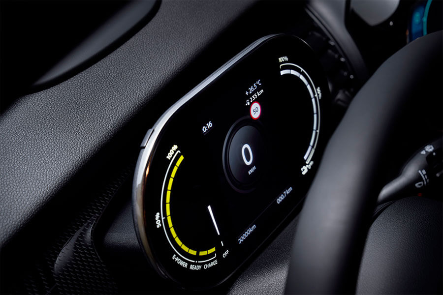 受惠於電池尺寸與成本降低,車內有更多預算進行裝潢。MINI專屬浮動式儀錶組,因應電力監控系統需求,首度換上數位款式,可從上方掌握車輛續航力、電池電量與充電進度。電子手煞車也是第一次出現在3門迷你車型上,此外引擎啟動鍵左側另新增有可調整煞車回充的開關。