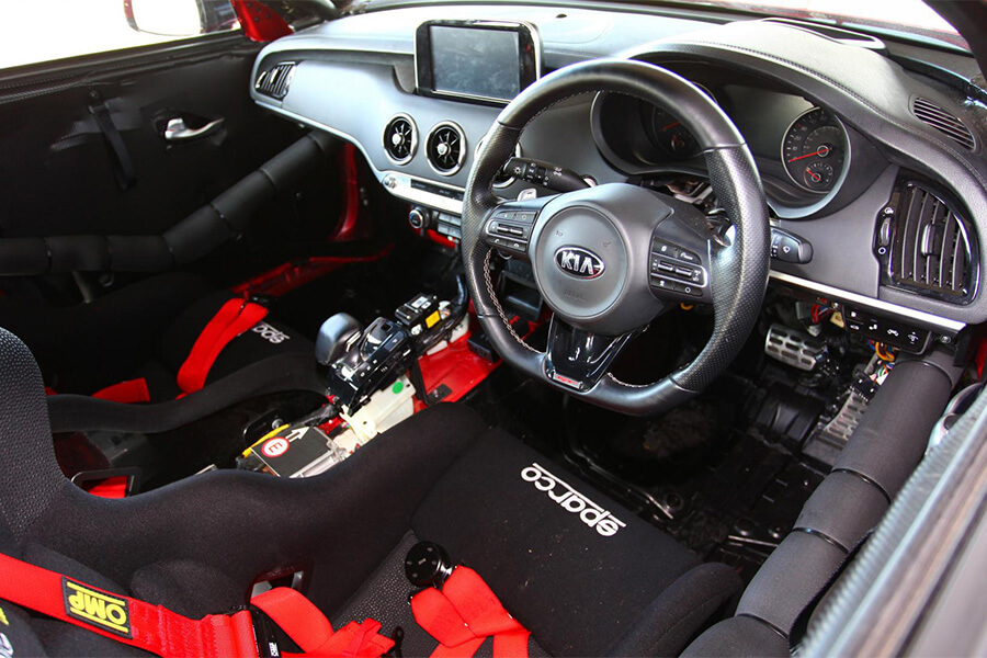此外,Stinger GT420在煞車、車架結構、避震器彈簧、前後防傾桿及空氣力學設計也皆以賽道導向做出相應的升級。為了減低車重,Oz Racing Leggera輪圈與Porelli p Zero Trofeo R高性能胎的組合首先為全車鏟掉至少20公斤。不過為了更加出色且輕盈的賽道表現,車廠更是將後座、氣囊、音響、行李廂、引擎上蓋、倒車雷達、引擎室油壓頂桿與前後保桿等多於配備也一併從車上拆除。