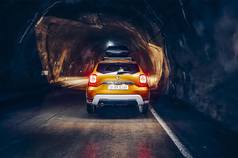 裝上車頂行李箱的橙色Dacia Duster絕不符合上述條件,可是某方面來說卻又跟這片大地十分相稱。