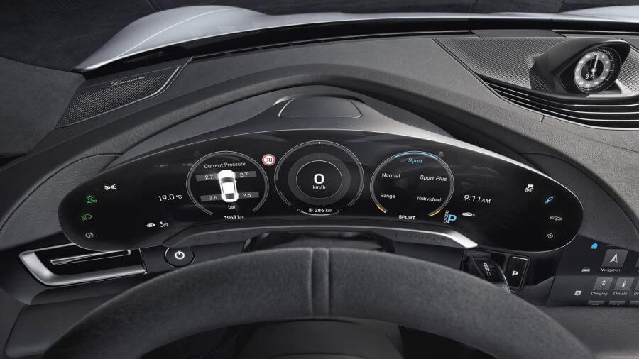 如果閣下對於保時捷旗下車款有一定程度的記憶力,或是對於911的各項設計風格如數家珍,第一眼看到Porsche Taycan的內裝肯定會散發出會心一笑,除了極為簡潔的T字型主架構之外,大型全數位儀表保留來自五環儀表向兩側延伸的經典設計,以及部分視角被方向盤盤幅遮蔽的萬年不變風格,這的確是保時捷工程師苦心安排的經典橋段或是深度梗,一種屬於保時捷的”不方便”。