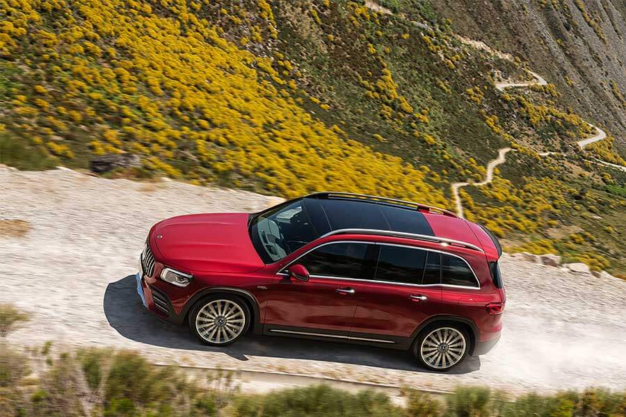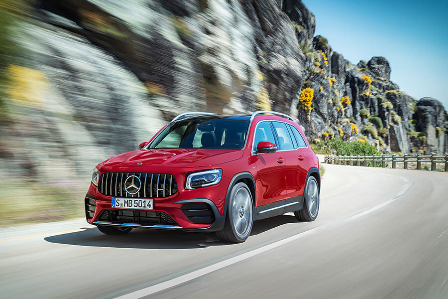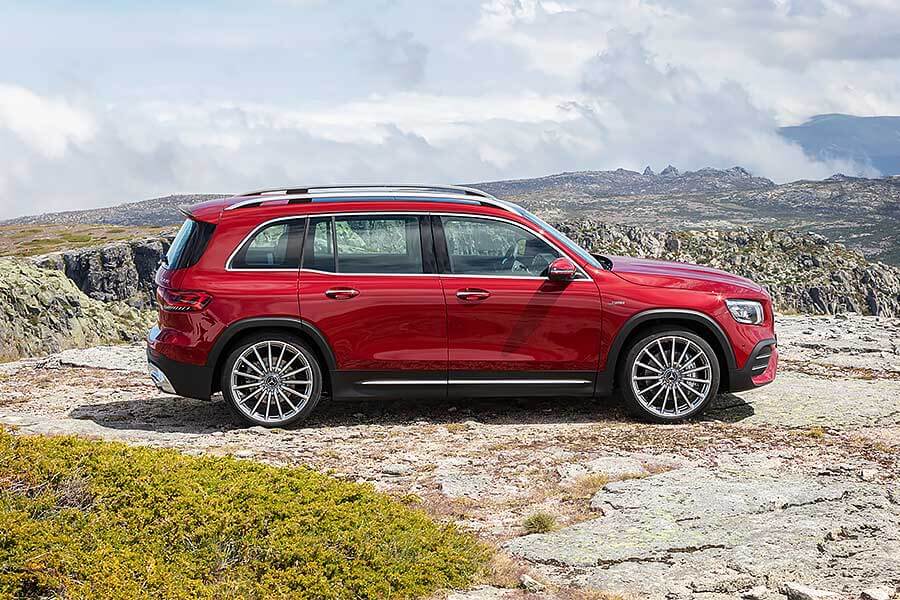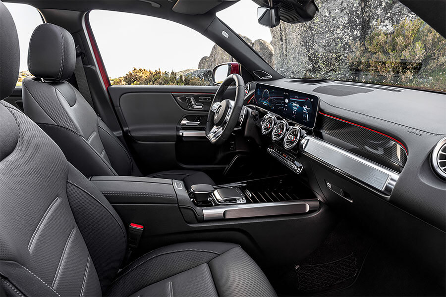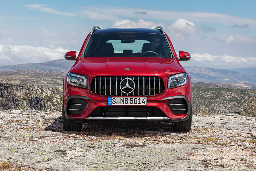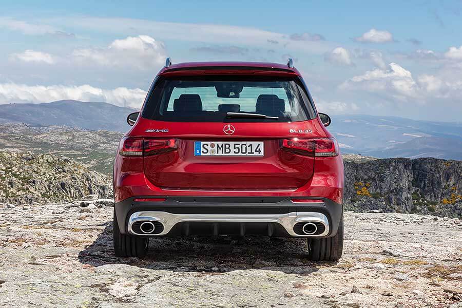 即將登上下個月法蘭克福車展的Mercedes-AMG GLB 35,為了這場兩年一度的車壇盛會,外觀上也做了更加符合AMG風格的打扮,例如前臉換上了Panamericana直柵水箱護罩、專屬前擾流,尾部亦在後保桿、擴散器、圓形雙尾管與車頂後擾流尾翼等處做了改造。19吋輪圈(可選至21吋)搭配著輪拱與側裙上的黑色防刮塑料,整體上看起來更具有運動與越野風格。