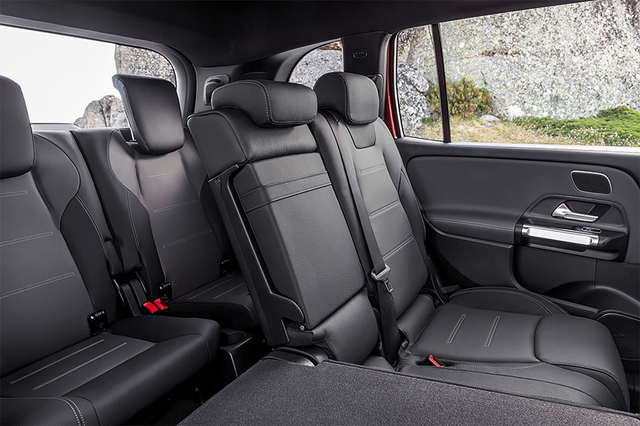 不得不再次讚美GLB寬敞的車內空間,如此井然有序的三排七人座配置,它真的辦到了GLA和GLC都無法達成的成就。雙前座配置有兩張符合車格設定的舒適運動座椅,透過三幅平把式跑車方向盤可見前方內建AMG版本MBUX系統的雙12.3吋螢幕,其中特有的Supersport顯示風格另可將轉速錶獨立放大呈現。