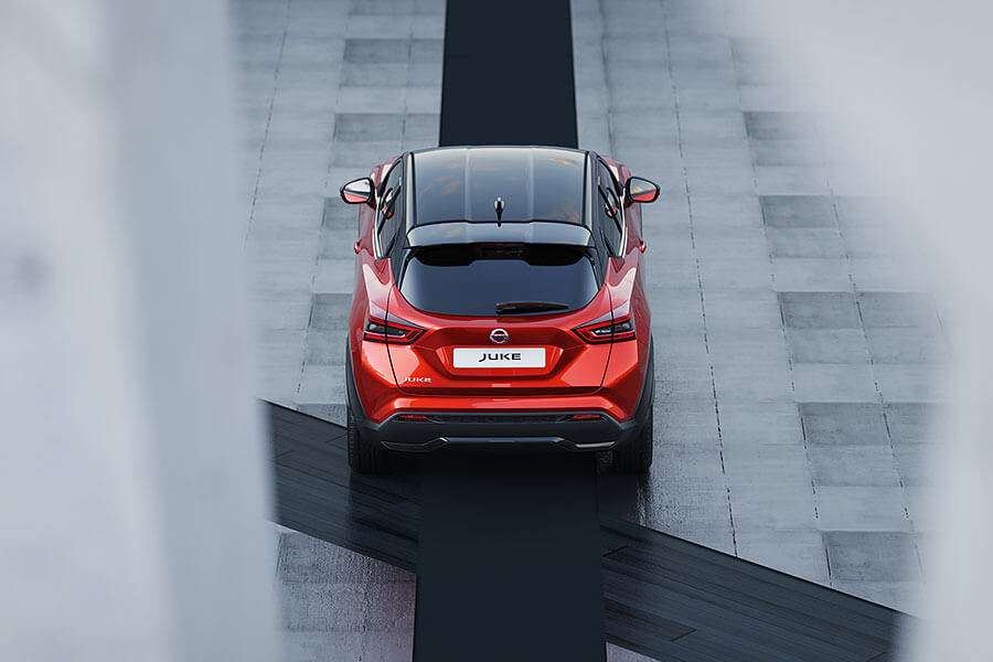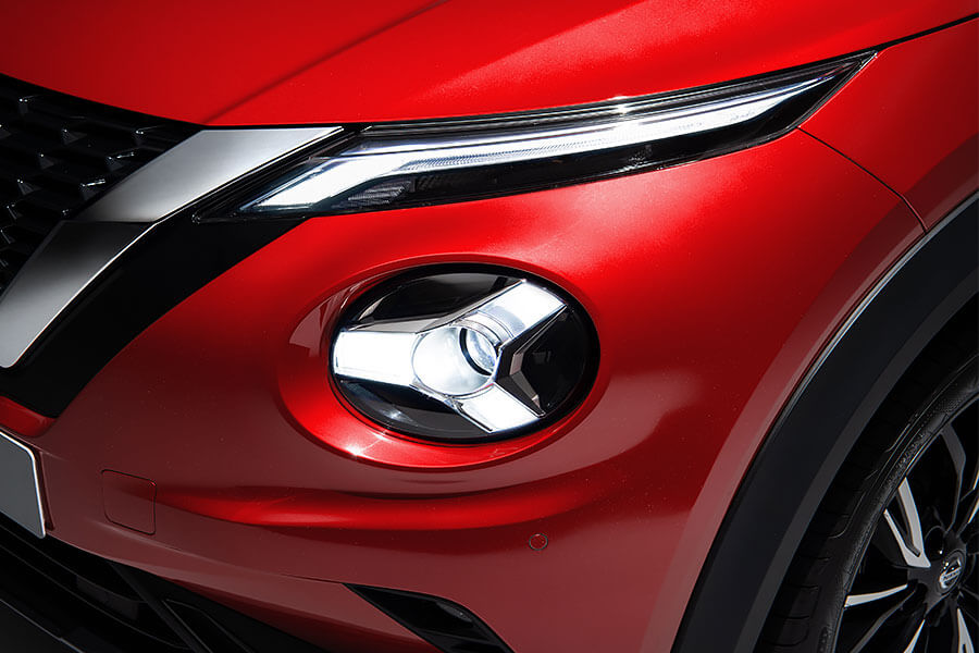 第二代Nissan Juke的外型,V-Motion水箱護罩開門見山地以一個深V見客,並在兩側輔以細長的LED日行燈,使前臉整體視覺更為和諧。獨特的圓形頭燈,現在不僅全面採用LED燈組,內部亦添加上Y字型設計強化差異性。若非更具肌肉感的腰線提醒,若只看側面輪廓很難不有失專業地把他認作Kicks。19吋輪圈、懸浮式車頂與多達11種車色選擇,二代Juke展現著獨特的歐系都會運動風格。車尾同樣標配LED尾燈,V字型光條則再次強調家族新世代設計語彙。