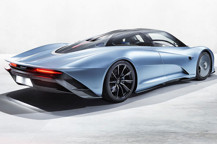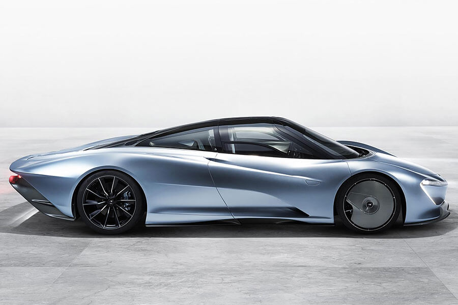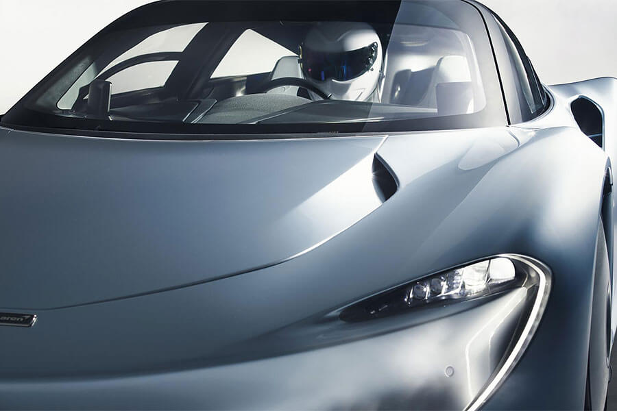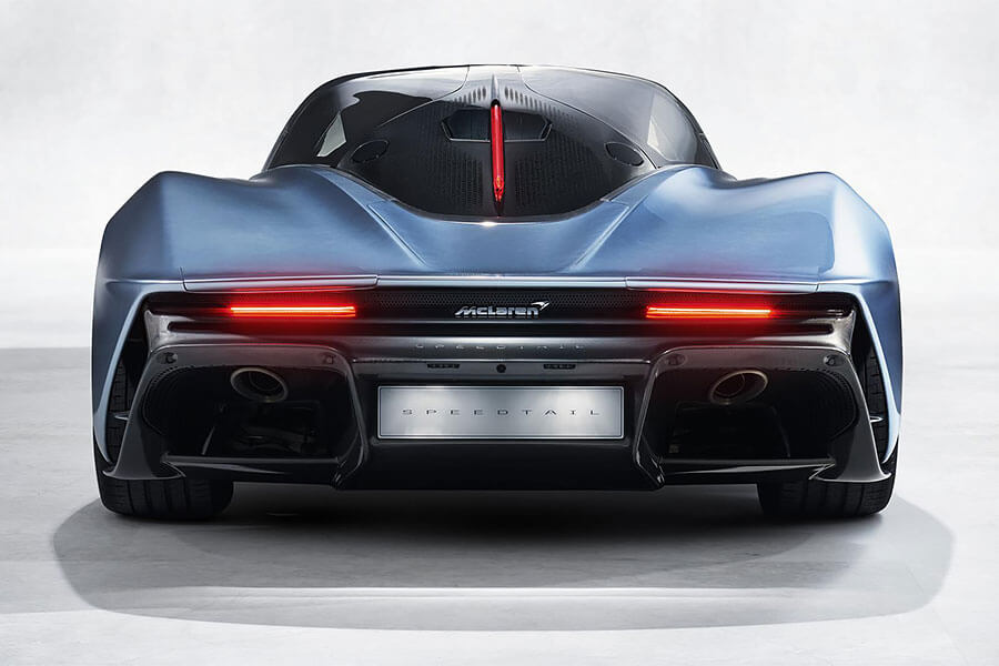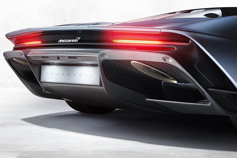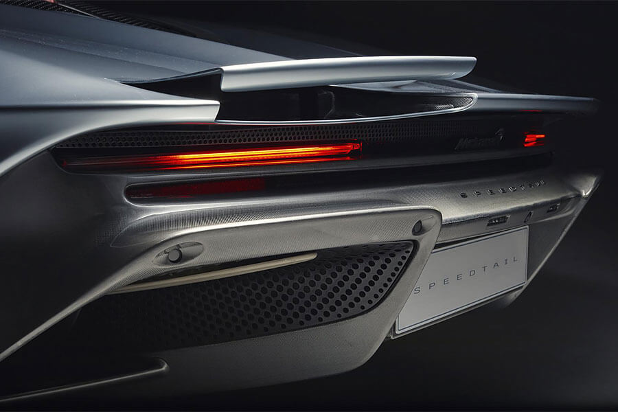 麥拉倫在這個問題上押注於grand touring仍然大有市場,而且深信喜歡三人行的車主大有人在。所以Hyper GT是大方向,Bugatti Chiron則是目標,縱使麥拉倫不會承認第二點。可想而知,Speedtail講究豪華與速度並重,最少正在朝著這個方向邁進。車廂設計、物料質感之類容後再談,這裡首先談談外表,尤其是車尾的修長形狀和優雅線條。這身設計簡直令人拍案叫絕,車身顯然與流經其上的氣流相敬如賓,並以含蓄手法攝取助燃或冷卻所需的空氣,經過一番導引後再用精確巧妙的手法順著利刃般的車尾回歸大氣。這襲碳纖維外衣全長5.13公尺,比Chiron長了60公分,流線型剪裁明顯帶有1930年代art deco和steampunk色彩,換個說法就是火箭人會開的那種汽車。