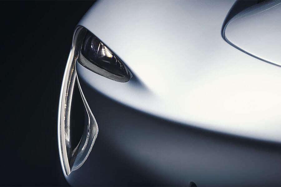 以上說的只是車尾,車頭的挑戰性但有過之而無不及。大概是車輪整流蓋和非常低矮的車鼻使然吧,我最初自然而然就聯想到MG EX-E、蓮花Etna之類的1980年代中概念車,而且越看越覺得耐人尋味,不禁衷心佩服設計師悉心隱藏那些進氣口和導氣槽。話雖如此,工程學在這個部位的意義其實大於美學。設計總監Rob Melville便形容這是「一顆慧星,質量集中於前方,後面拖著一條長尾巴」。