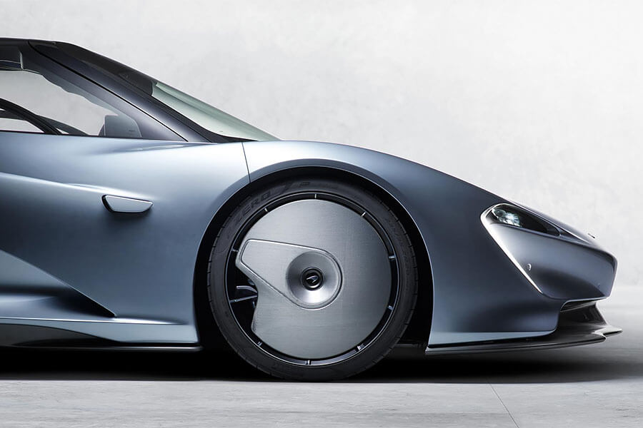 他談到車輪整流蓋時也顯得興致勃勃:「沒有它們的話,這部車便無法達到所稱極速和加速境界。」這些整流蓋不會跟隨車輪旋轉,能夠促使空氣僅僅從一個缺口流暢地離開輪拱,功效幾可完全消除車輪附近的亂流。雖然設計上可以拆下來,但麥拉倫並不建議這樣做,大家只要想像一下煞車粉塵日久累積的情況自然心裡有數。喔,大家已經察覺到嗎?車身上的確看不見照後鏡,取而代之是A柱底部裝有接通螢幕的伸縮鏡頭。