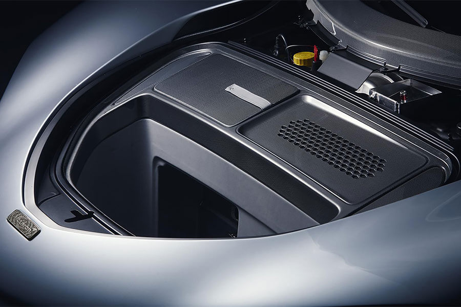 車門用電動方式開關,外側座椅底部設有抽屜,車頭車尾各有一個行李艙(總容量162公升,另有匹配車廂裝潢的行李箱可供選購),可惜缺了F1超跑車身兩旁的貯物暗格。杯架?據他們說可以在額外配件目錄中找到。